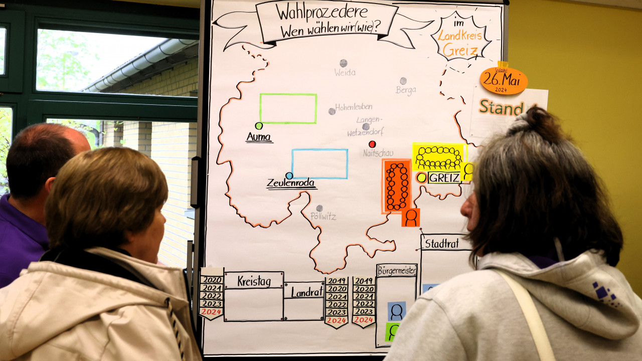 Noch vor wenigen Jahren waren Menschen mit Behinderung von den Wahlen ausgeschlossen. Erst im Jahr 2019 stimmte der Deutsche Bundestag für die Einführung eines inklusiven Wahlrechts. Die Vogtlandwerke haben es sich zum Ziel gesetzt, grundlegendes Demokratiewissen und -verständnis zu vermitteln und damit die Eigenverantwortung von Menschen mit Behinderung zu stärken, sodass sie befähigt werden, eigenverantwortlich ihr Stimmrecht bei Wahlen auszuüben.