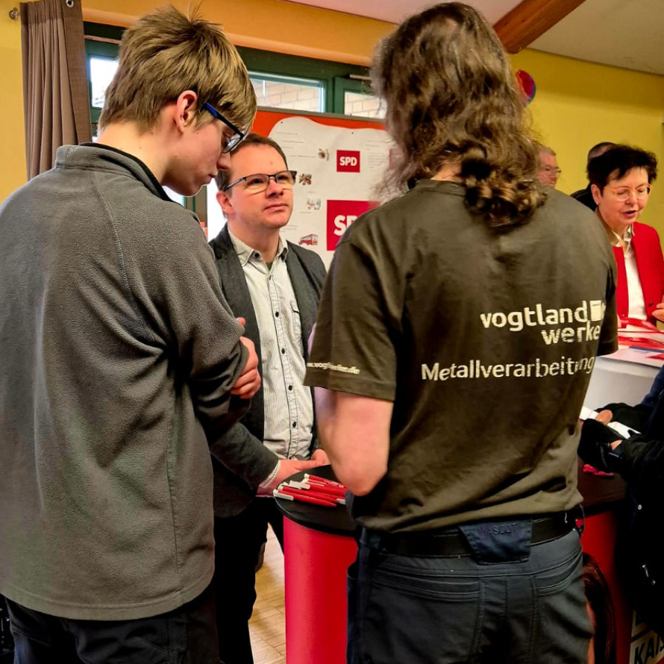 Die Spitzenkandidaten unseres Wahlkreises, von CDU, SPD, Bündins 90/Die Grüne sowie Die Linke sind der Einladung in unsere Geschäftsstelle nach Naitschau gefolgt, um Rede und Antwort zu stehen. Neben Informationsständen gab es einen Polittalk mit vorbereiteten Fragen unseres Werkstattrates.