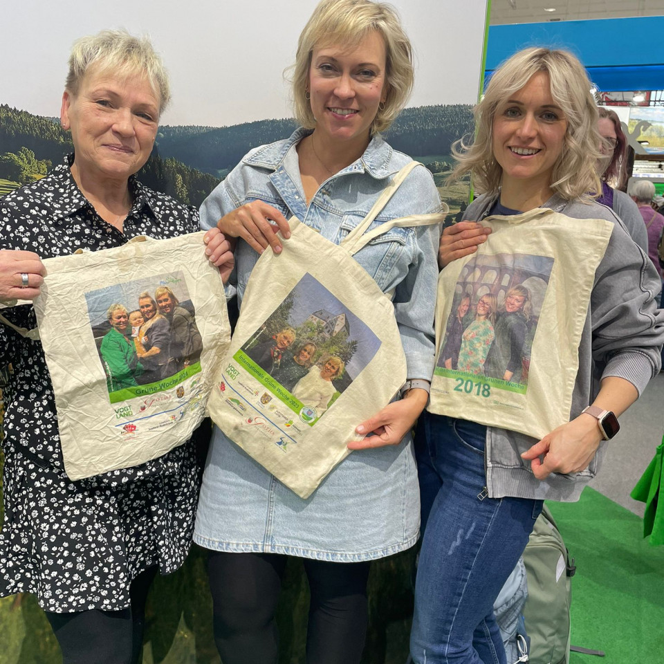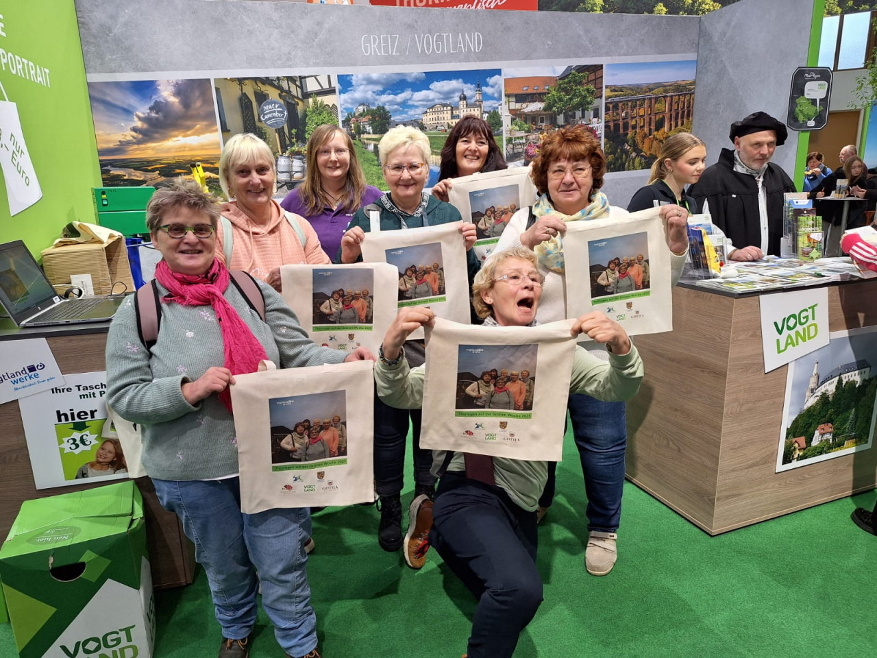 Seit vielen Jahren unterstützen die Vogtlandwerke den Messestand des Tourismusverbandes Vogtland e.V. auf der Grünen Woche in Berlin. Unsere begehrte Fotoaktion, bei der sich Messebesucher vor einem Motiv aus dem Thüringer Vogtland fotografieren lassen und ihr Bild, auf einem Stoffbeutel bedruckt, als Souvenir mit nach Hause nehmen können, war wieder ein voller Erfolg. Wir haben ca. 3000 Stoffbeutel an die Messebesucher verteilt.