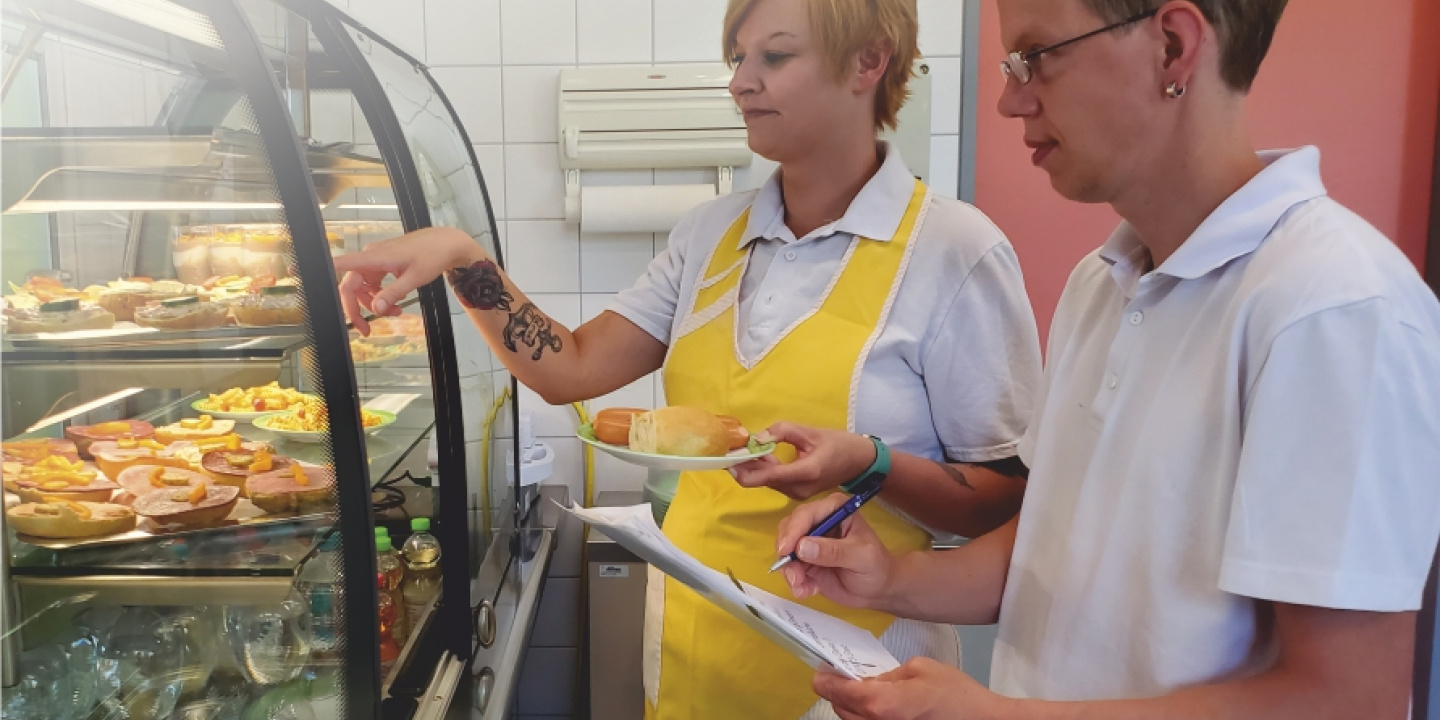 Die Pausenversorgung zur Frühstücks- und Kaffeezeit wird an den Standorten eigenständig vorbereitet. Dazu gehören unter anderem das Belegen frischer Brötchen, selbst gebackener Kuchen, Zubereitung von Salaten und Süßspeisen und vieles mehr. Nach der Ausgabe in den Kantinen, stehen abschließend Reinigungsarbeiten auf dem Programm, denn zu einer guten Versorgung gehört auch ein sauberes Arbeitsumfeld.