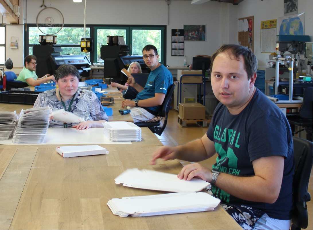 Sorgsamkeit, Geschick und ein gutes Augenmaß, sowohl bei einfachen Tätigkeiten als auch bei mehrgliedrigen Arbeitsabläufen sind gute Voraussetzungen für diesen Bereich. Geduldig und gemeischaftlich werden die zahlreichen Aufträge namenhafter Kunden bearbeitet.