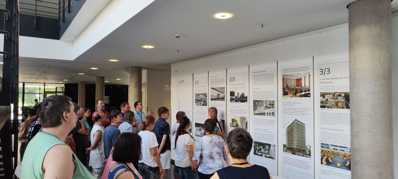 Vor dem Gebäude, in dem kleinen Park, begann die Führung mit der Besichtigung des NSU-Mahnmals. Es ging weiter mit einem Einblick in die Geschichte des Landtages und der Besichtigung der Haftzelle, welche früher von der geheimen Staatspolizei genutzt wurde.