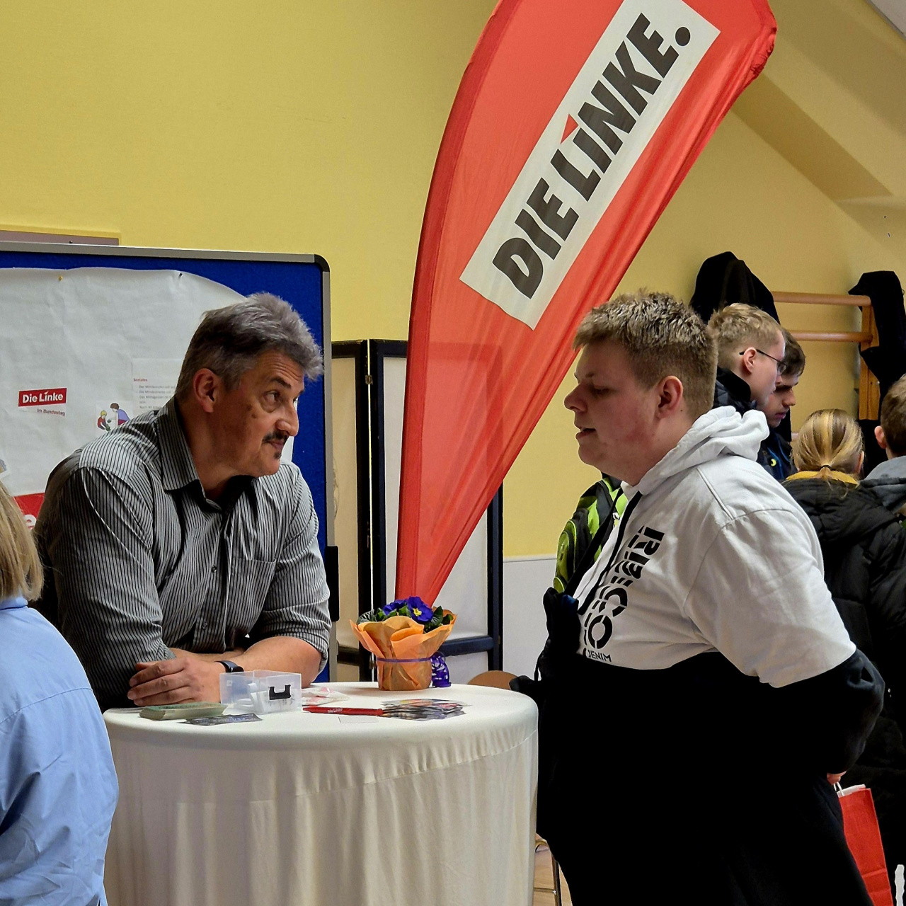 Die Spitzenkandidaten unseres Wahlkreises, von CDU, SPD, Bündins 90/Die Grüne sowie Die Linke sind der Einladung in unsere Geschäftsstelle nach Naitschau gefolgt, um Rede und Antwort zu stehen. Neben Informationsständen gab es einen Polittalk mit vorbereiteten Fragen unseres Werkstattrates.